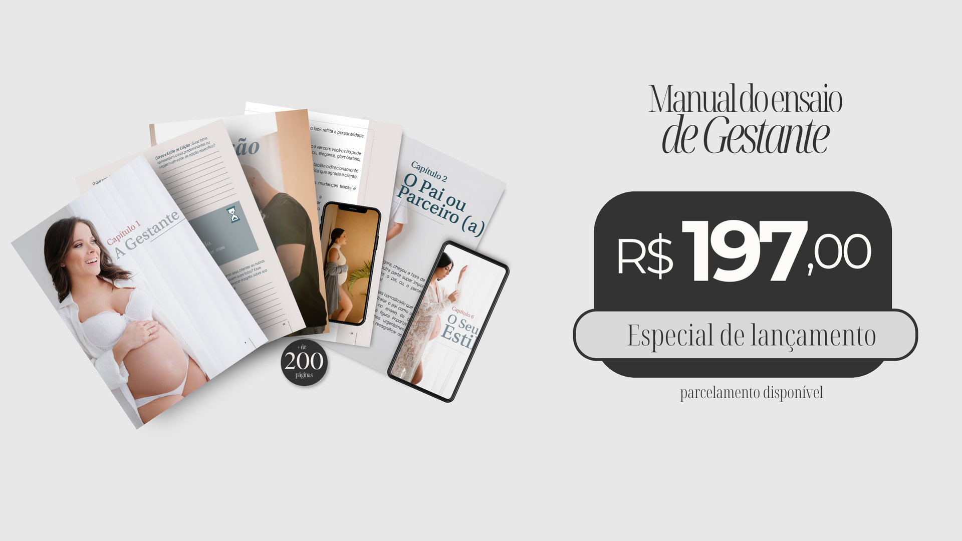 Com o Manual do Ensaio de Gestante, você terá o guia que faltava para transformar seus ensaios em algo realmente valioso. Desenvolvido para fotógrafos que desejam ir além das poses óbvias, este manual oferece estratégias claras para criar uma experiência única para seus clientes. Aprenda a capturar momentos autênticos, criar conexões genuínas e, consequentemente, oferecer ensaios que emocionem e fidelizem.
